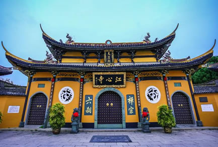 現(xiàn)存之江心寺為清乾隆五十四年(1789)重建,面積約2870平方米,分前、中、后三殿。前殿為天王殿,東西有長廊,兩端置鐘鼓樓。今宋代古鐘尚存。中殿為圓通殿,最為壯觀,供奉的是觀音菩薩,江心寺為全國32所觀音菩薩道場之一。殿內檻聯(lián)匾額,琳瑯滿目。正柱聯(lián)為宋王安石撰并書。后殿三圣殿,殿額與對聯(lián)皆為弘一法師所書。寺院大門兩邊有題為宋王十朋撰書的疊字聯(lián):“云朝朝朝朝朝朝朝朝散,潮長長長長長長長長消”。由書法家方介堪正楷重寫。寺周古木參天,景色清幽。1983年列為全國對外開放142座重點寺院之一。