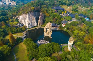 三國(guó)時(shí)期,這里曾是一處采石場(chǎng),經(jīng)歷代能工巧匠的不斷開(kāi)鑿,鬼斧神工般地造就了姿態(tài)各異的石宕、石洞和石壁。千百年來(lái),隨著宗教的介入,文人名流的渲染及后人的開(kāi)發(fā),現(xiàn)已形成天工大佛、爐柱晴煙、七星巖、八卦臺(tái)、文昌閣、蠶花洞、蓮花聽(tīng)音等景觀。